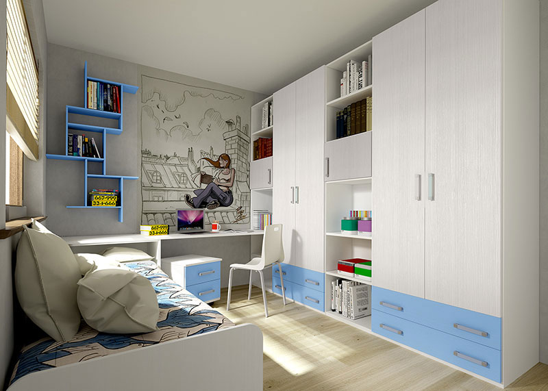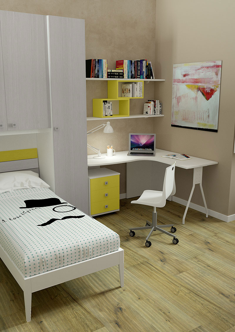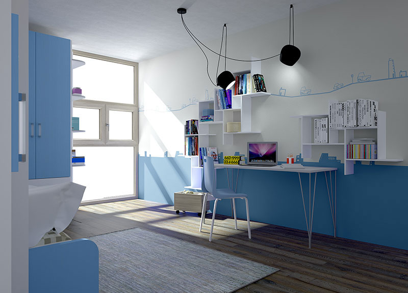 La cameretta è un luogo dove rifugiarsi, in cui i ragazzi potranno esprimersi e imparare a gestire il loro spazio condividendolo anche con gli amici. E’ fondamentale creare un ambiente piacevole dove sentano di poter star bene, illuminato dai colori che più amano e che stimoli la loro fantasia.