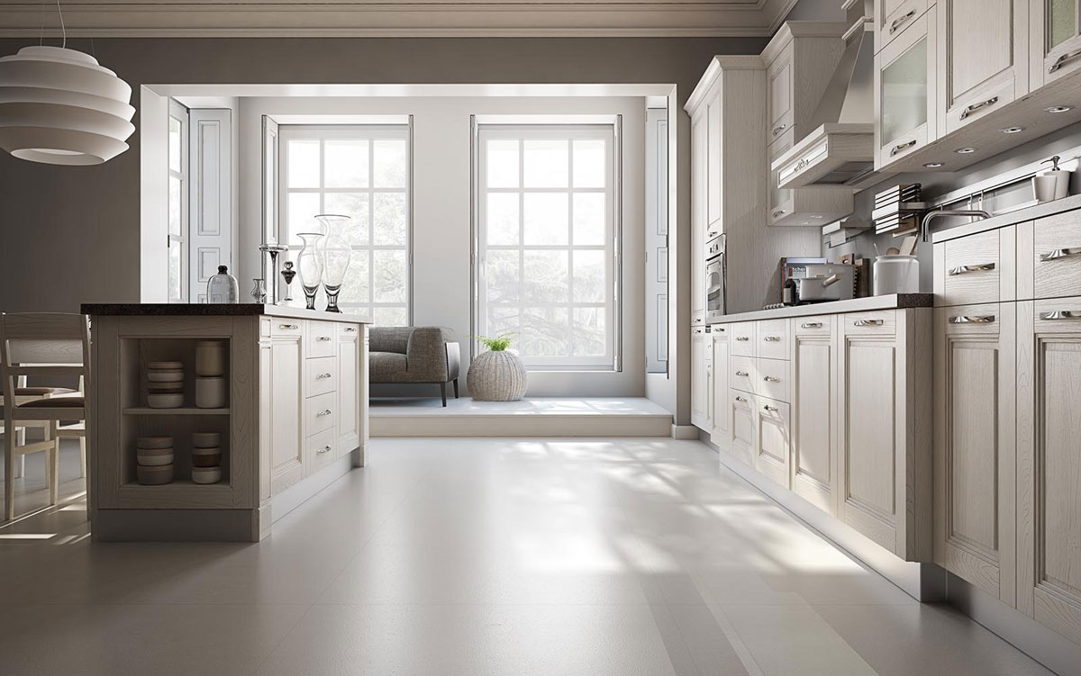 Sofia reinterpreta in modo originale i canoni della tradizione e coniuga il calore della cucina in legno alla pulizia del design contemporaneo, realizzando una pregevole sintesi tra moderno e classico.