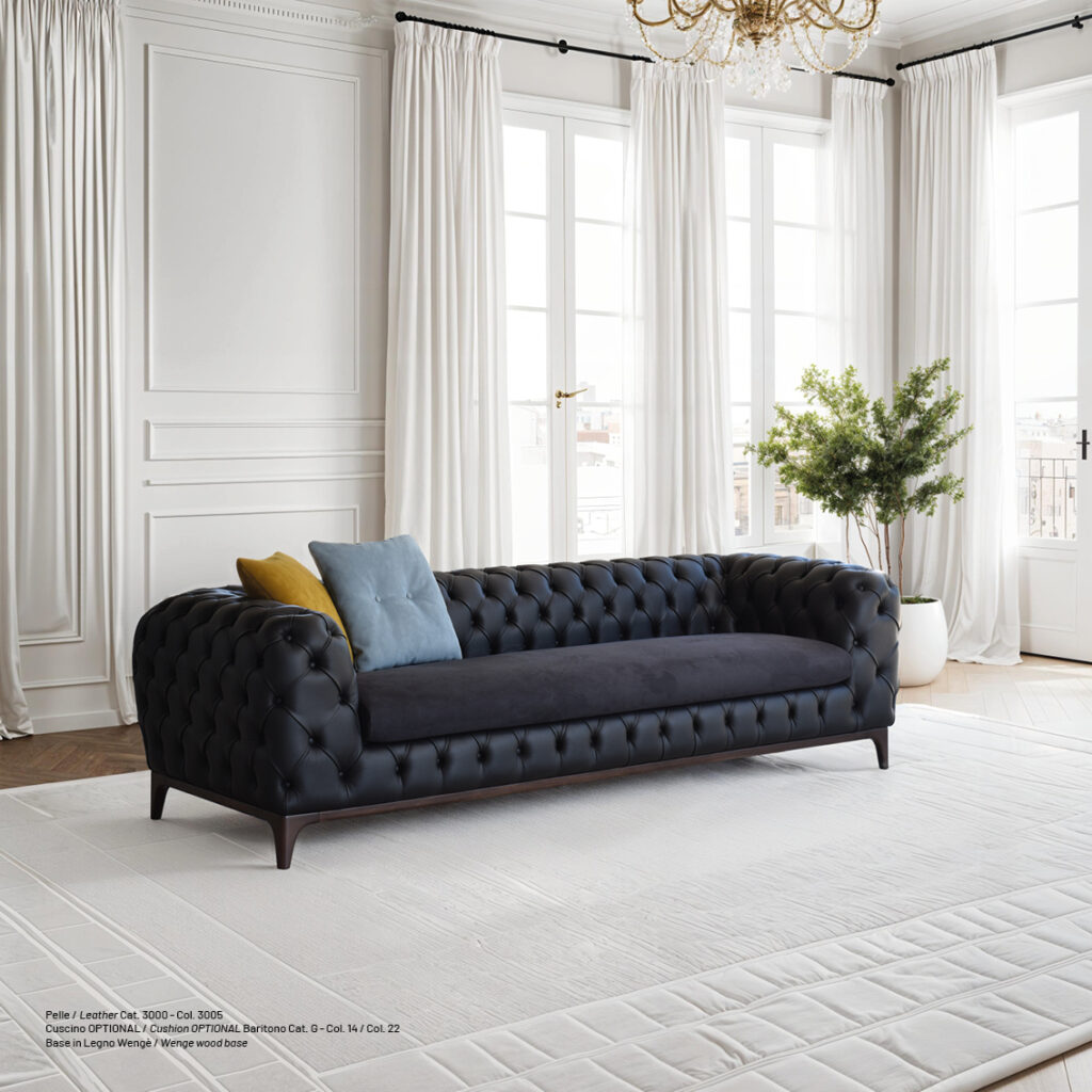Perché è un divano “a tutto tondo”. Grazie alla finitura capitonné che prosegue anche sul retro, è perfetto per essere posizionato a centro stanza, definendo lo spazio con una raffinatezza che non conosce angoli ciechi.