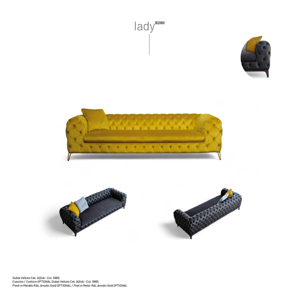 Tocco di stile: Personalizza il tuo Lady con i cuscini opzionali in tonalità a contrasto (come il giallo senape o l’azzurro polvere) per enfatizzare l’anima creativa del tuo living.