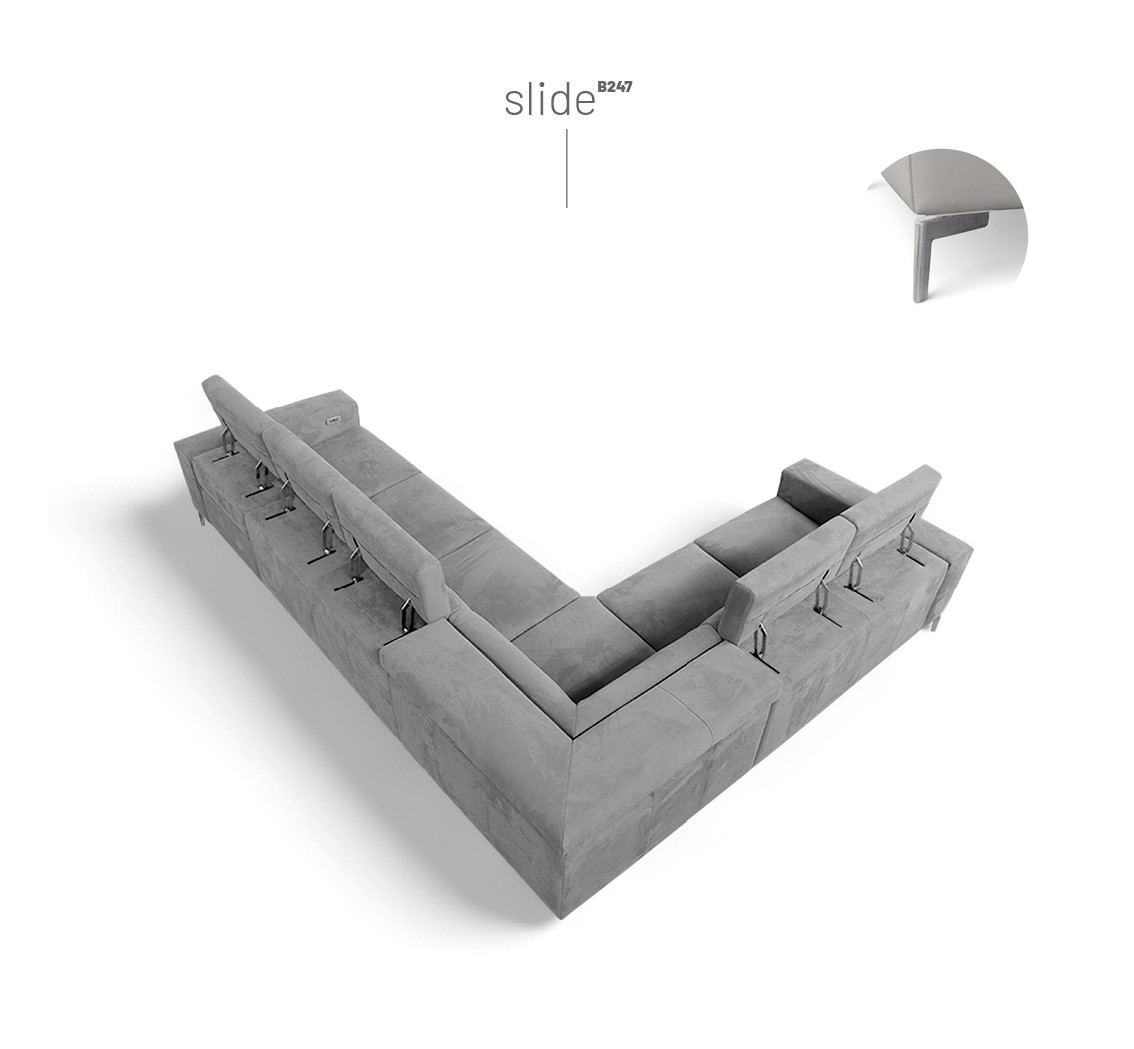 • Modularità Senza Limiti: Che si tratti di una composizione lineare, angolare o con un’ampia chaise longue terminale, Slide si modula perfettamente sui tuoi spazi.
