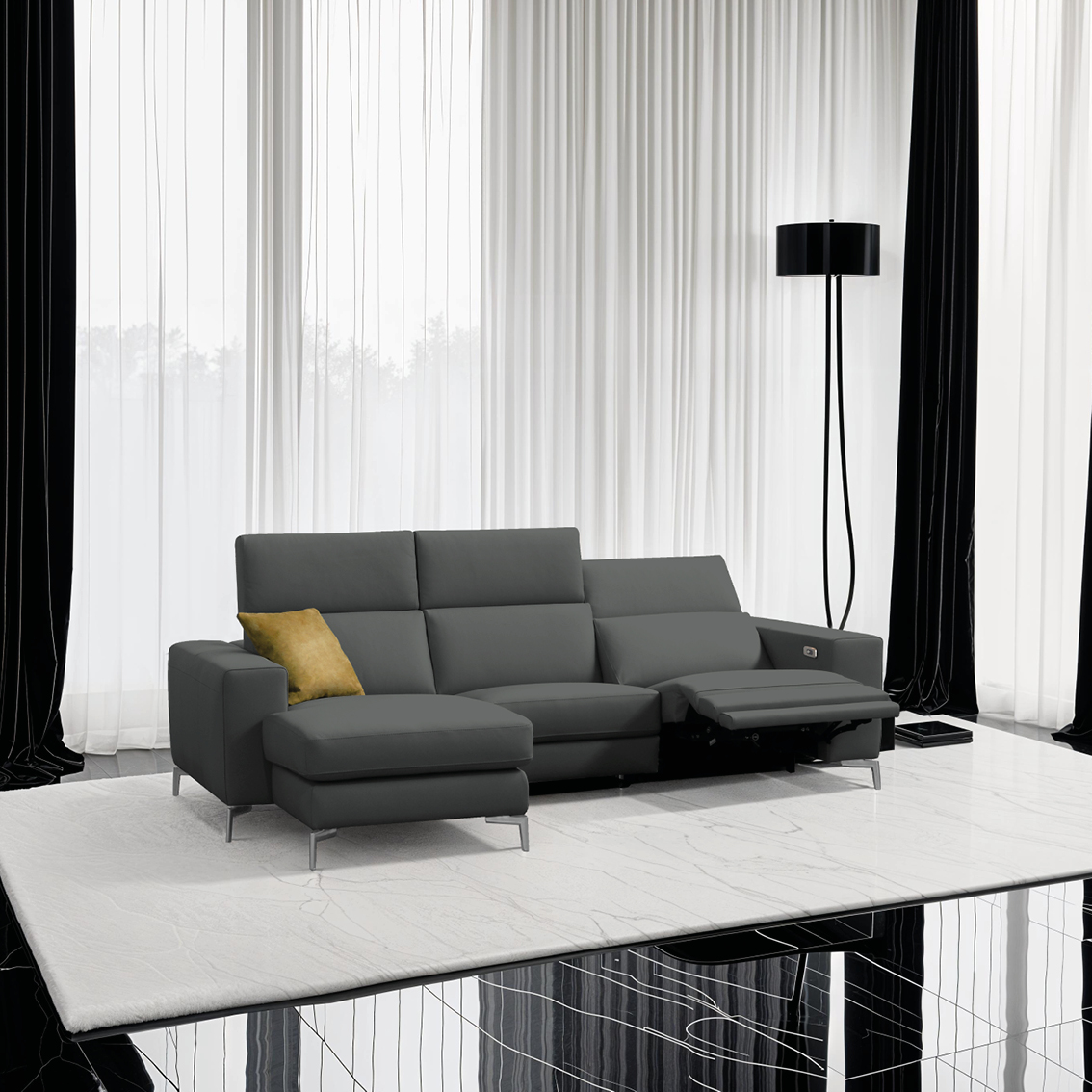 • Sistema Relax Elettrico: Per il massimo del relax, il modello può essere configurato con una o più sedute dotate di meccanismo relax elettrico. Grazie ai comandi discreti, è possibile regolare l’estensione della seduta e l’inclinazione dello schienale per trovare la posizione perfetta.