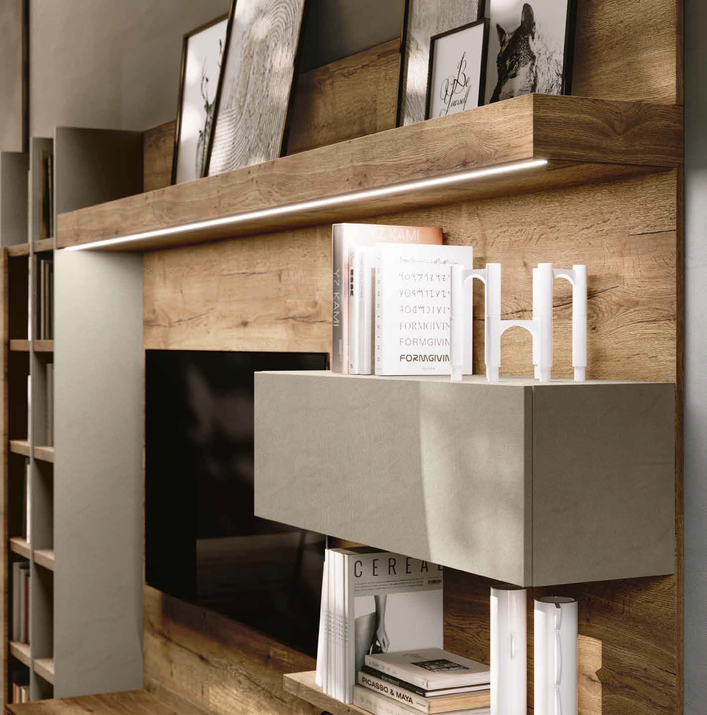 Integrazione Multimediale: Progettata per il living moderno, include soluzioni per il passaggio dei cavi e vani dedicati, mantenendo l’estetica pulita e ordinata.