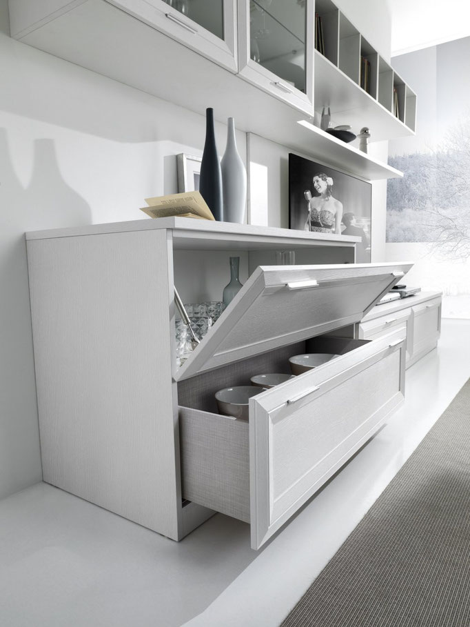 Il seguito naturale sulla scia del successo del programma JAZZ. Ancora più originale.. ancora più D’ELITE con  Filigrana argento sulle vetrine/ante e maniglia con SWAROSKY!