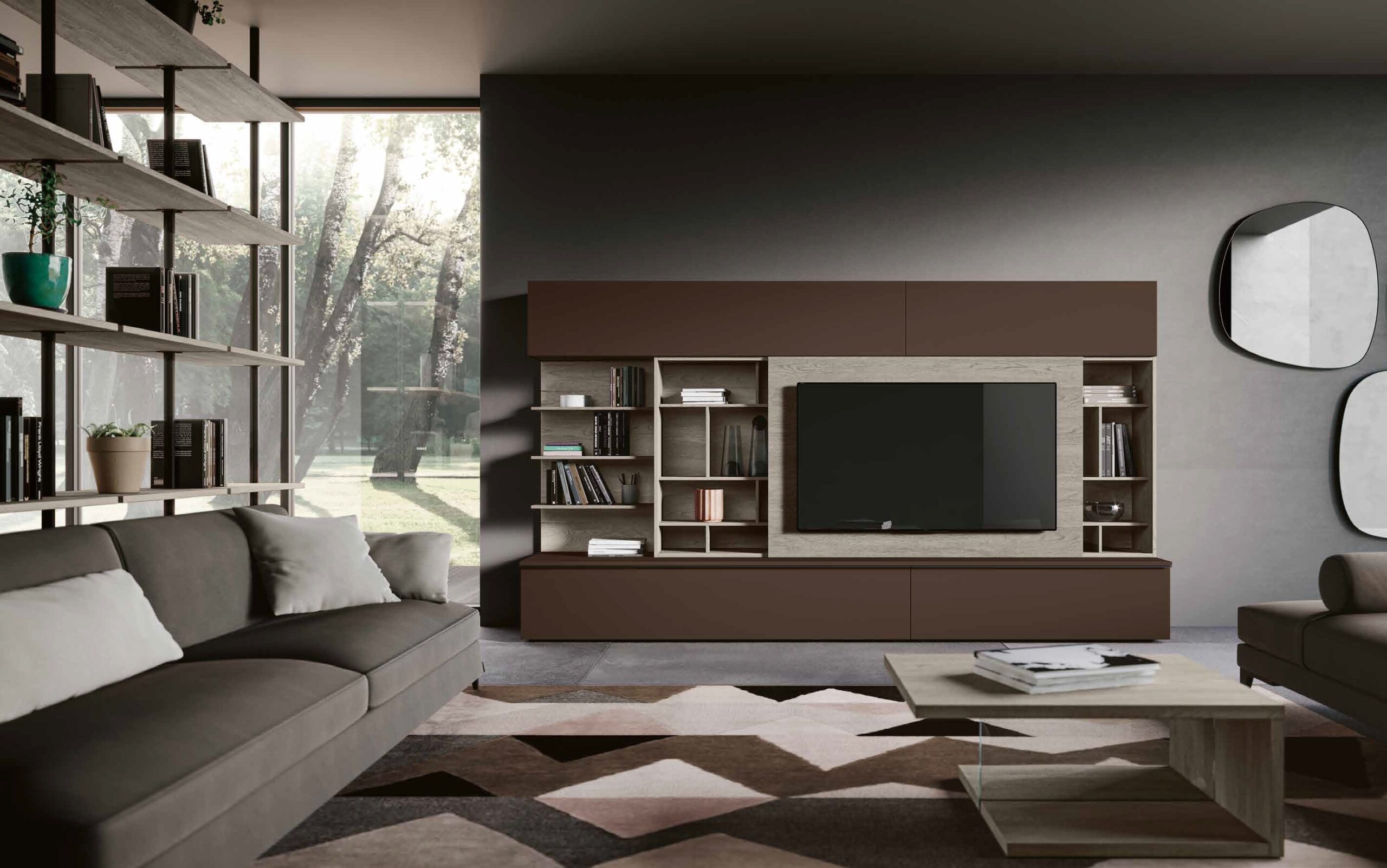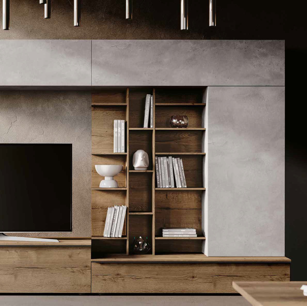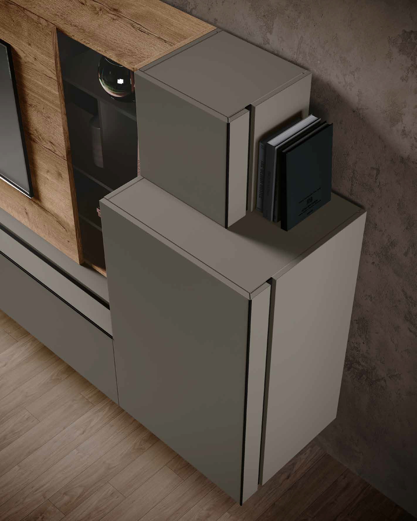 La parete Mito a spalla è la scelta ideale per chi desidera un ambiente living accogliente e strutturato. È un arredo "senza tempo" che non si limita a decorare, ma definisce lo spazio, offrendo una soluzione d'arredo completa che valorizza ogni centimetro della tua casa.